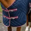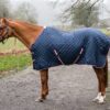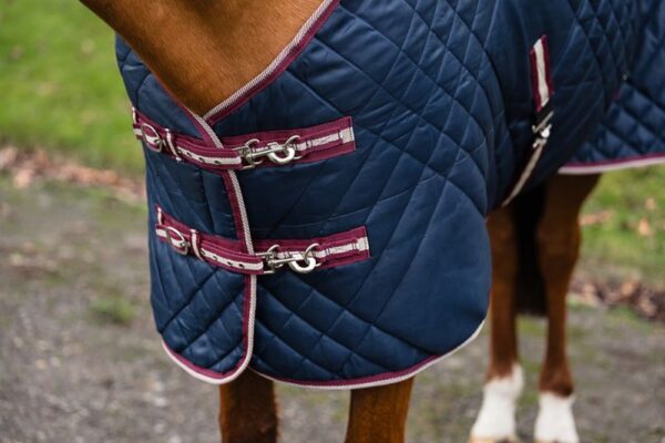 This 200gsm fill medium weight stable rug has a distinctive chevron quilt design for maximum breathability whilst locking in warmth. With fittings for a matching neck cover, sold seperately, for increased versatility. With multi-adjustable chest strpas to accomodate both the narrowe and broader chests and necklines. The density of these rugs with their towelling lining make them super snug even though light in weight.