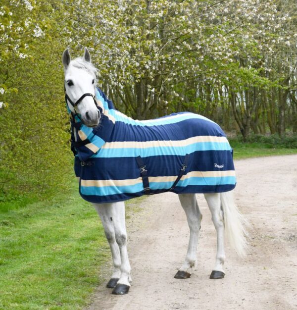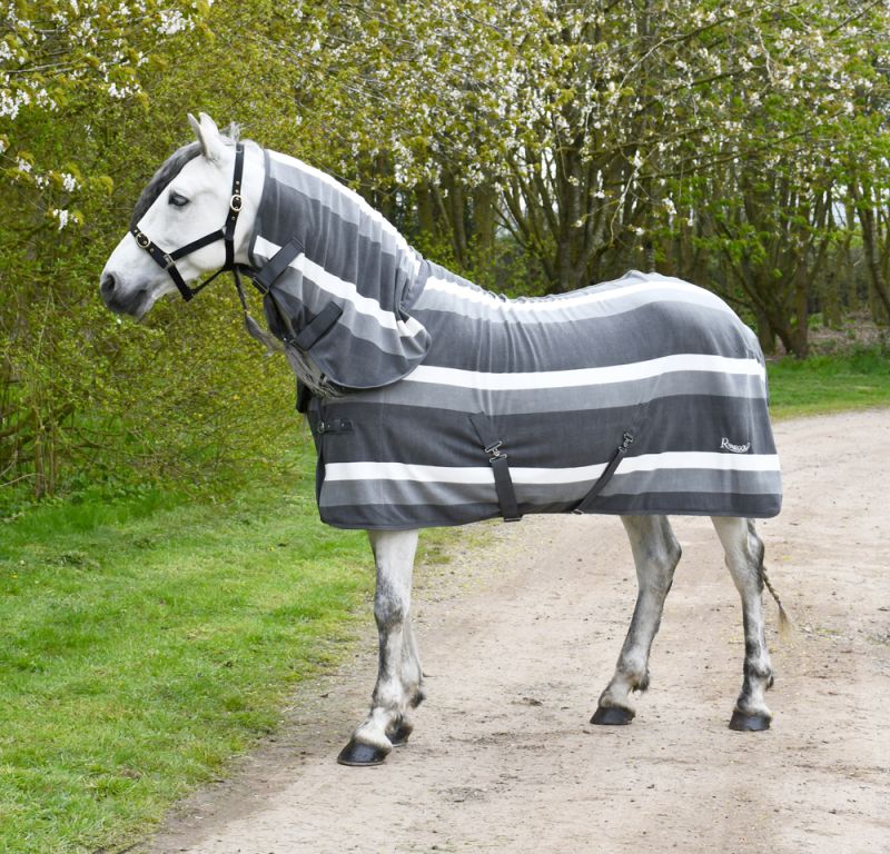 The integrated neck cover includes an elasticated loop at the poll, allowing it to be secured to a headcollar if required. These versatile rugs are ideal for clipped horses in the stable, helping to keep them clean and tidy for the show ring, and are equally effective as an underlayer during the colder months.