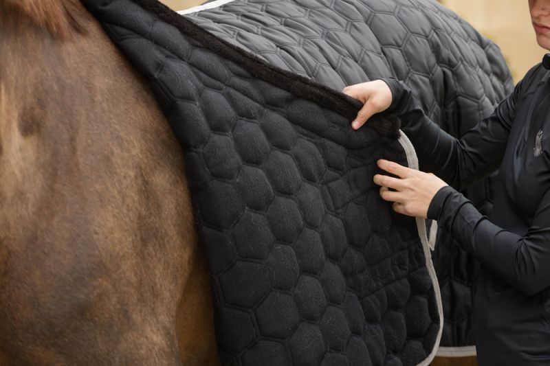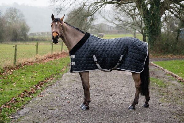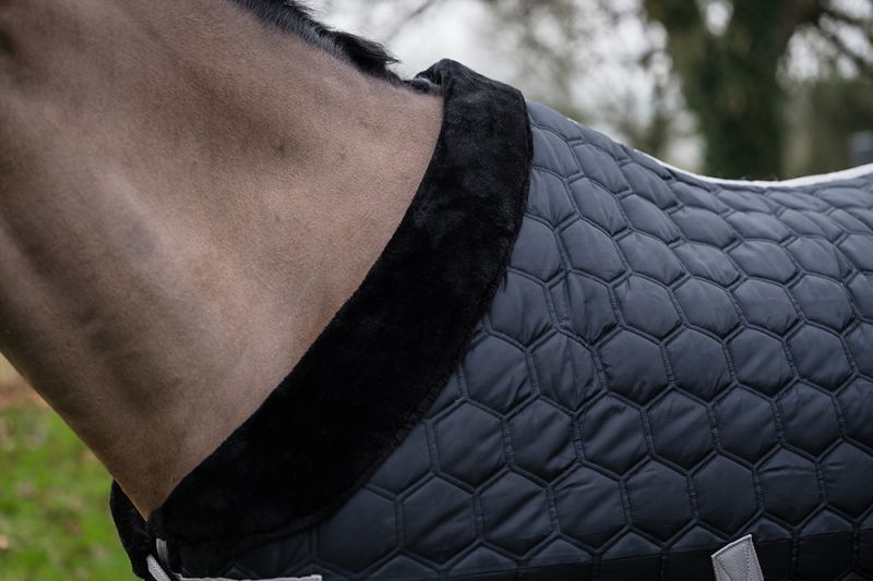 The quilting and fleece lining of this rug creates a lovely dense , warm feel against the Horse.